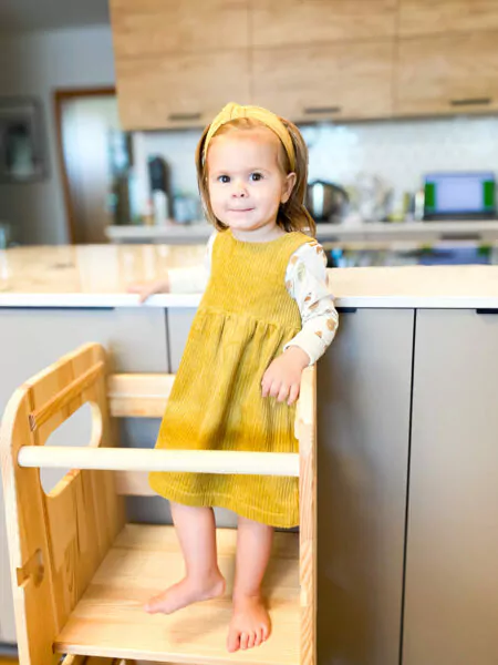 Babykleid aus Baumwoll-Cord mit Knopfleiste im Rückenteil und gezogenem Rock