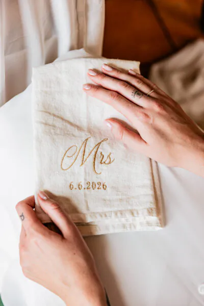 Edle Leinenserviette für die Hochzeit in der Farbe Creme