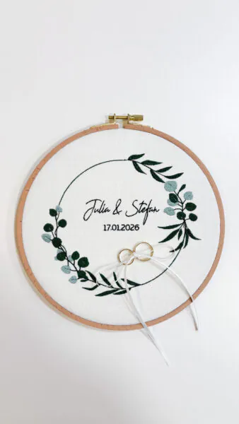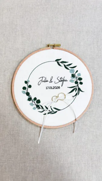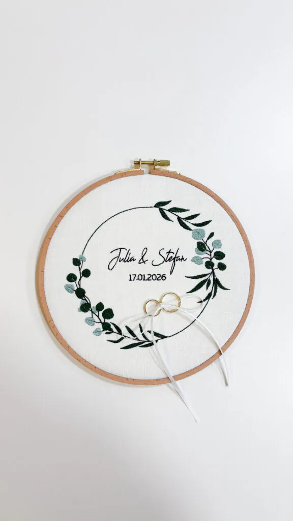 Ein Stickrahmen, der euren besonderen Tag für immer festhält.