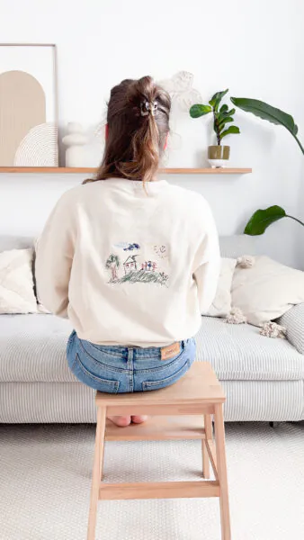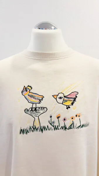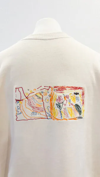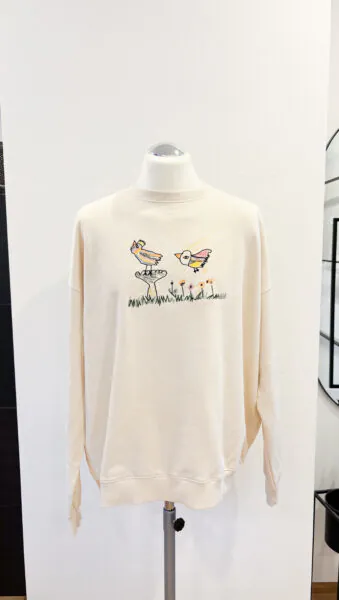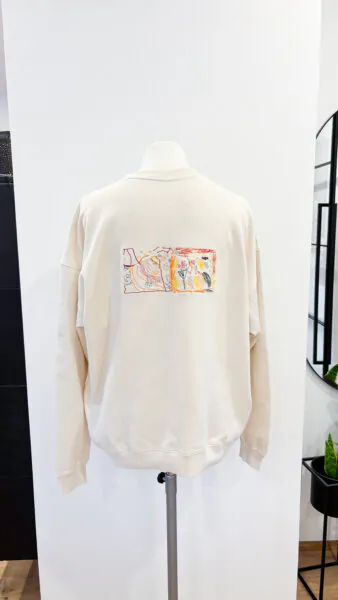 - Sweater Rückseite: Persönliche Kinderzeichnung – Stick kann von den tatsächlichen Farben des Bildes abweichen